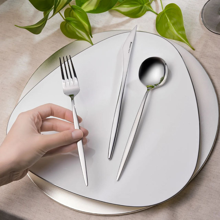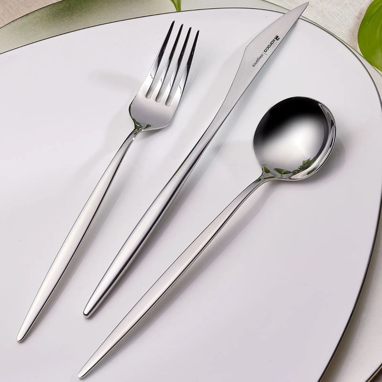 روکش آینه ای: روکش آینه ای صیقلی به ست کارد و چنگال زیبایی می بخشد و آن را به گزینه ای عالی برای شام و مراسم رسمی تبدیل می کند.