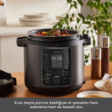 به لطف قابلیت پخت تحت فشار، بدون نیاز به مراقبت مداوم، میتوانید حبوباتی مانند نخود و لوبیا را سریع و ایمن بپزید. همچنین انواع غذاهای گوشتی مانند سوپ، پلو، خوراک، یخنی، خورشت و حتی غذاهای سبکِ تنوری را با قابلیت پخت آهسته بهسادگی آماده کنید.