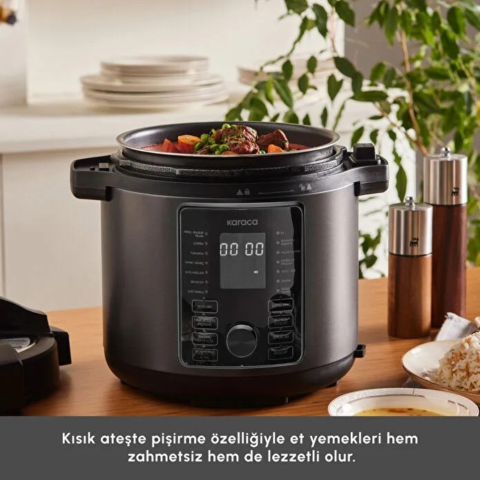 با زودپز برقی کاراجا با ظرفیت ۶ لیتر و مخزن سرامیکی، میتوانید انواع غذاها را بهراحتی بپزید و برای مهمانیها و سفرههای بزرگ غذاهای متنوع آماده کنید. کافی است از میان ۱۷ برنامه از پیش تنظیمشده، گزینه موردنظر خود را انتخاب کنید.