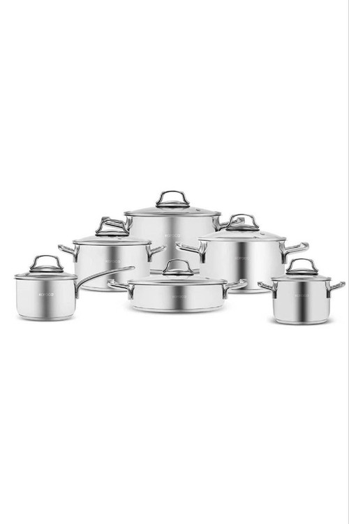یک عدد قابلمه عمیق قطر 14 سانتی متر همراه درب - یک عدد قابلمه عمیق قطر 18 سانتی متر همراه درب - یک عدد قابلمه عمیق قطر 20 سانتی متر همراه درب - یک عدد قابلمه عمیق قطر 22 سانتی متر همراه - یک عدد نیم قابلمه قطر24 سانتی متر همراه درب - یک عدد قابلمه سس 14 سانتی متر همراه درب