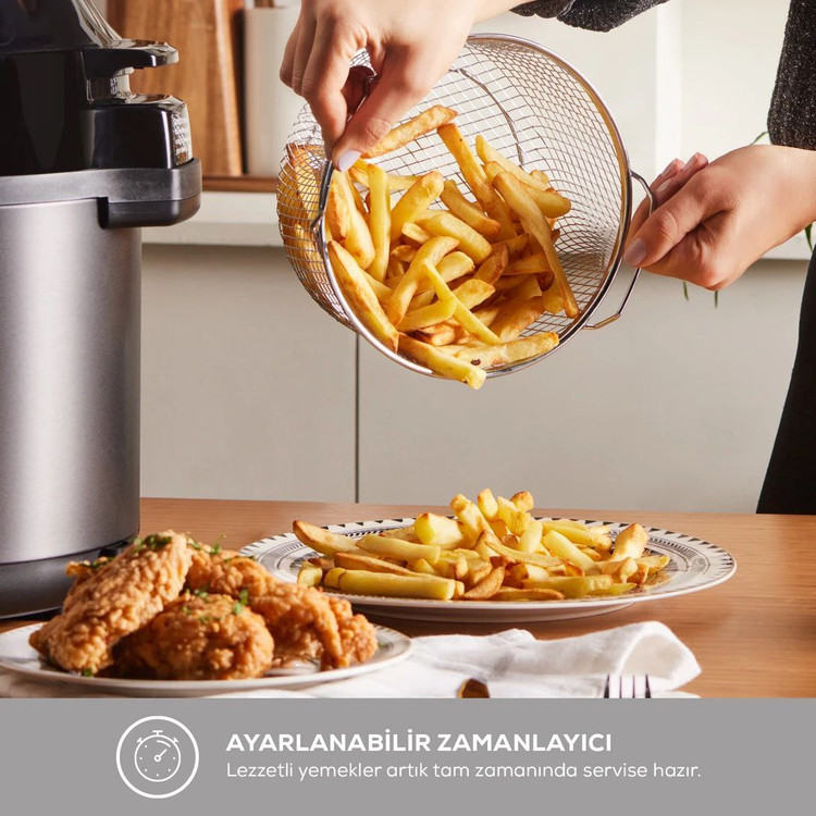 به لطف ویژگی سرخ کن 1500 واتی، می توانید با یک کلیک، بدون روغن یا تنها با 1 قاشق روغن، سیب زمینی سرخ کرده سالم، سیب زمینی سرخ شده با مرغ ترد، داخل آبدار و سبزیجات خوشمزه تهیه کنید.